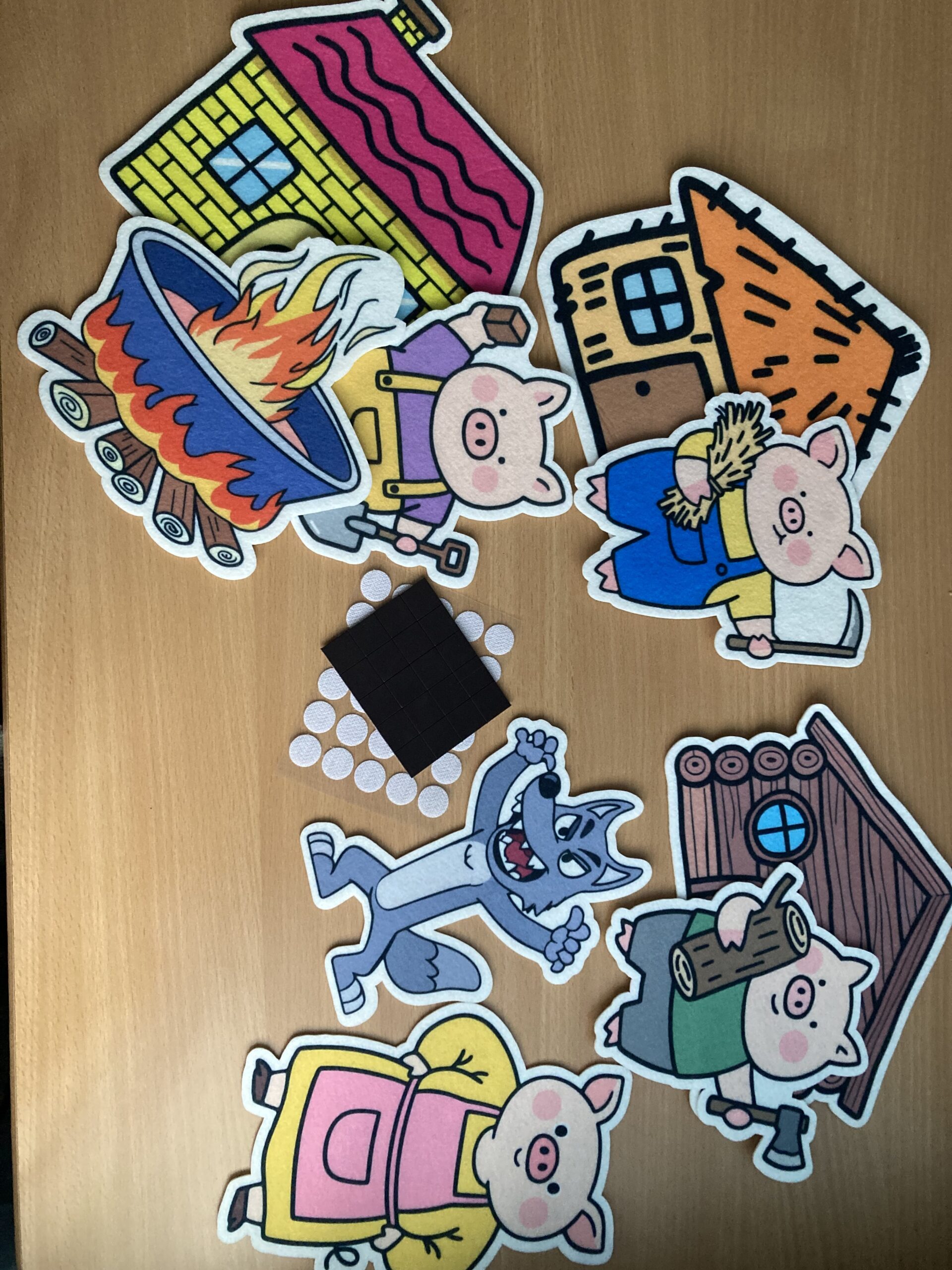 Kaasas kinnitusena nii takjakrõpsud ( kleebitavad) kui väikesed magnetid ( kleebitavad), mida saab soovi korral tegelaste paigutamisel kasutada.